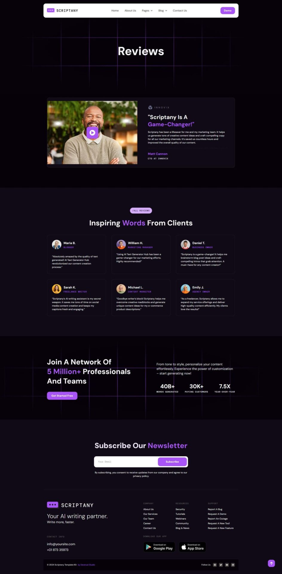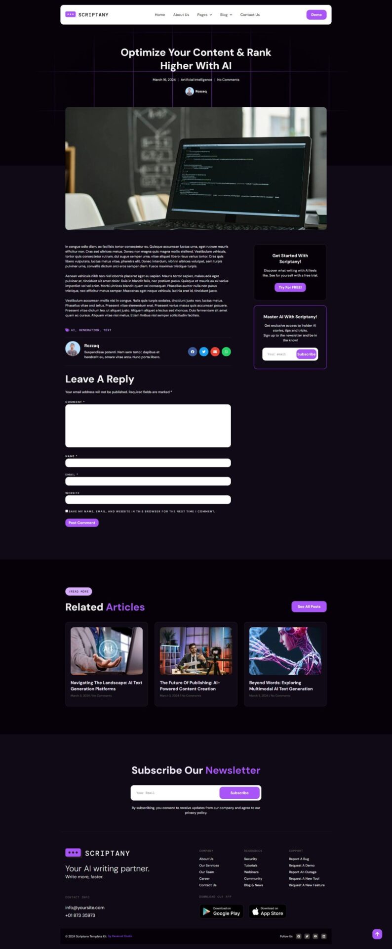 Scriptany offers clean layouts and crisp designs tailored specifically for tech-centric ventures: